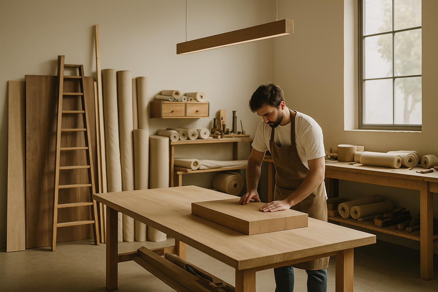 Vi arbejder med naturlige materialer, ærlig produktion og klassiske snedkerteknikker — fra fingertapning til oliering.